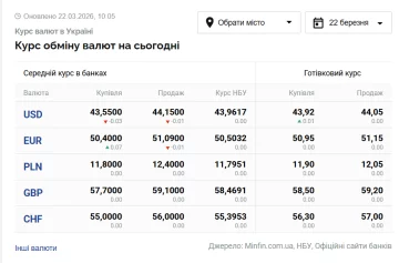 Який курс валют в Україні сьогодні, 22 березня