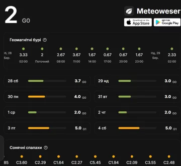 - 28 марта (суббота): Ожидается спокойный геомагнитный фон с К-индексом 2 . Это соответствует "зеленому" уровню, который обычно не влияет на самочувствие людей или работу техники.